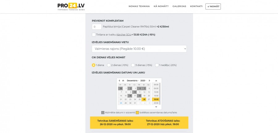 Tīrīšanas tehnikas nomas rezervāciju platforma - PRO24.LV